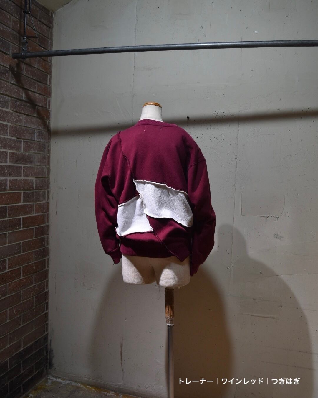 トレーナー|ワインレッド|つぎはぎ