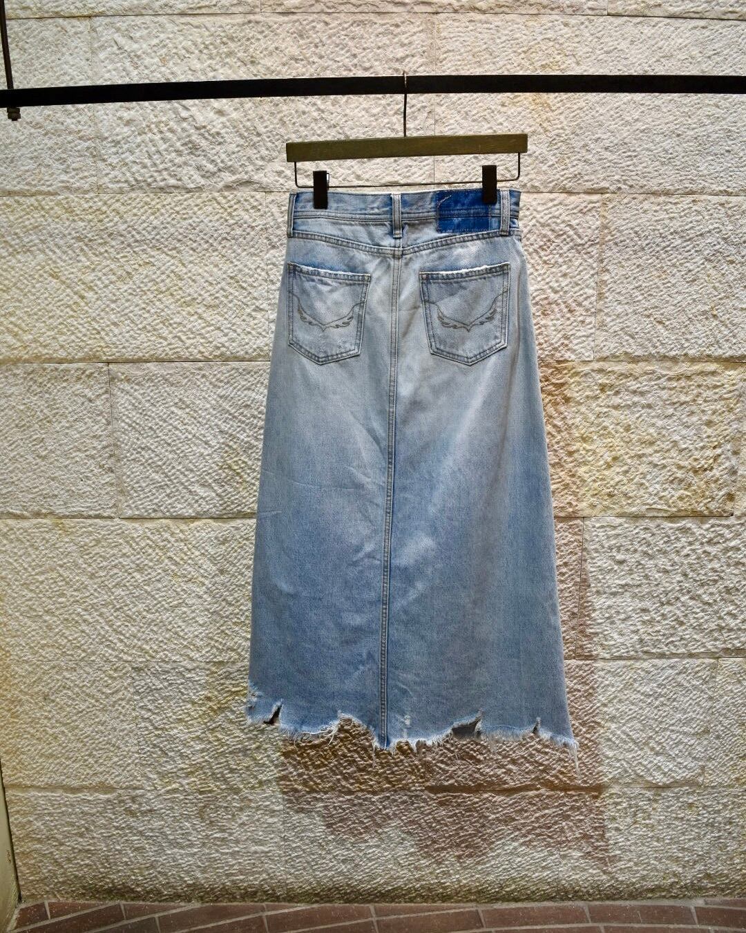 energy closetがお預かりした古着をアップサイクルした一点もののデニムスカートです。