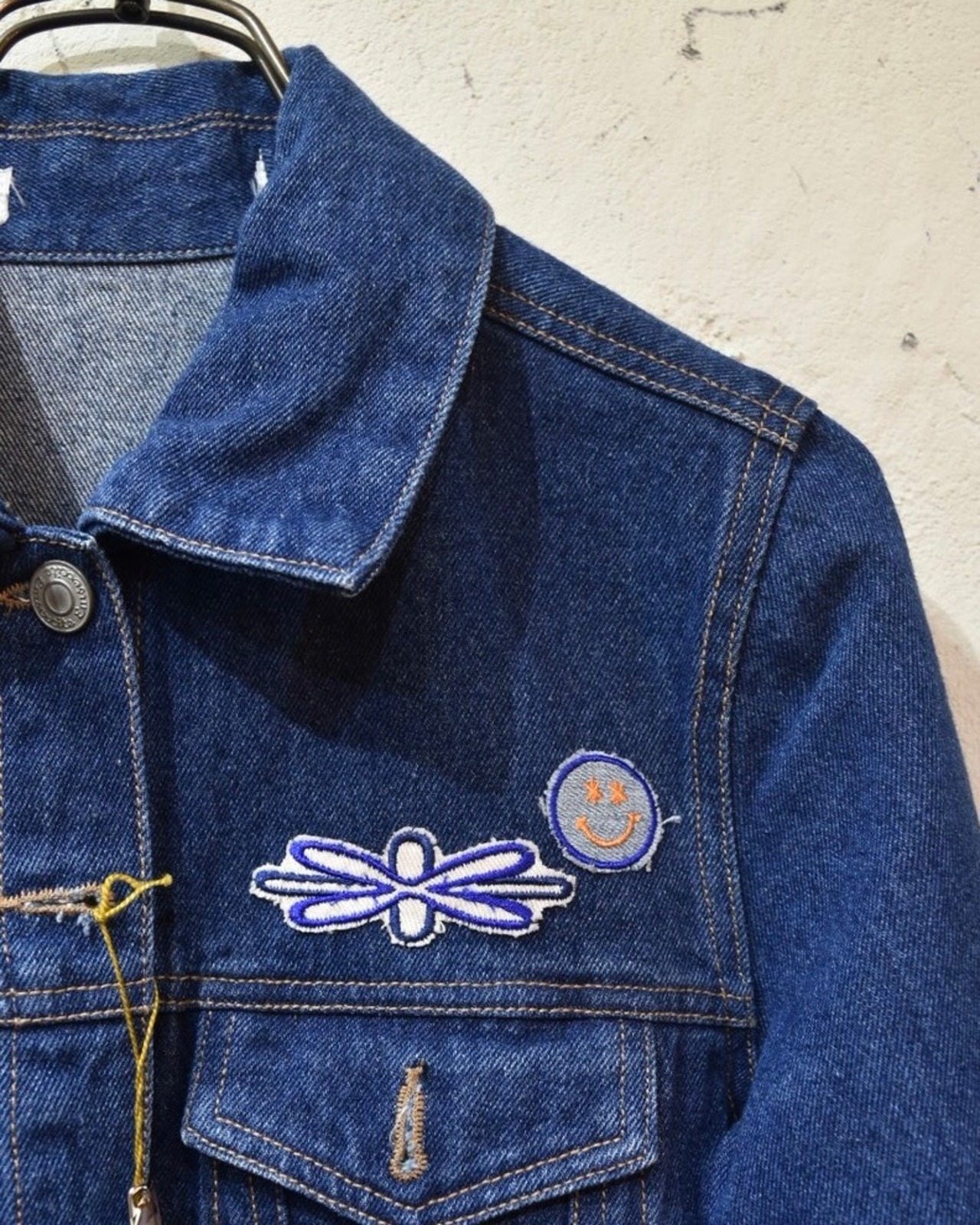 古着で作った刺繍ワッペンはアイロン付け後、手縫いで丁寧に仕上げています。