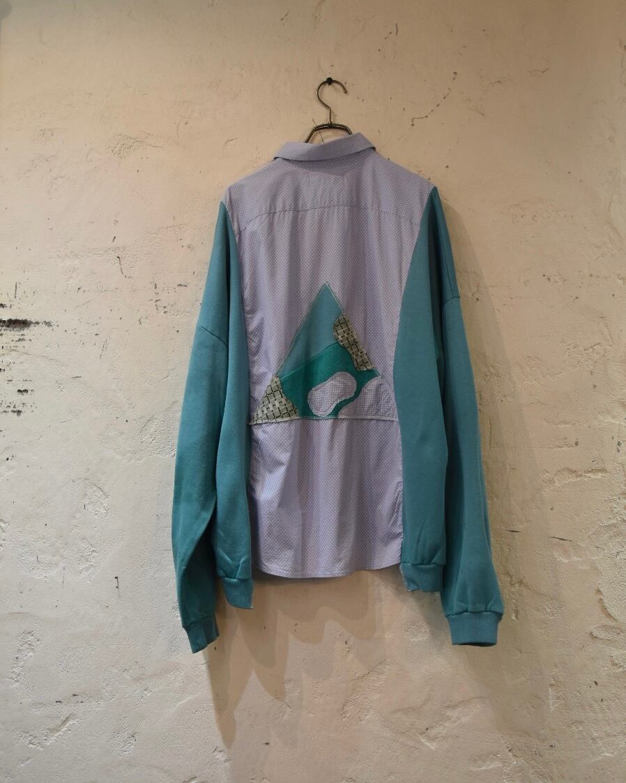 古着を繋ぎ合わせたリメイク作品は性質上、経年色落ちやダメージ、ほつれが出る場合がございます。万が一、縫ったラインからほつれ穴がでた場合には、裏返しにして元の縫い目に沿って縫い付けていただくと直せますのでよろしければお試しください。