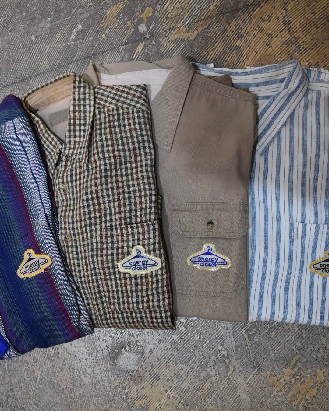 energy closetがお預かりした古着をアップサイクルした一点もののシャツです。