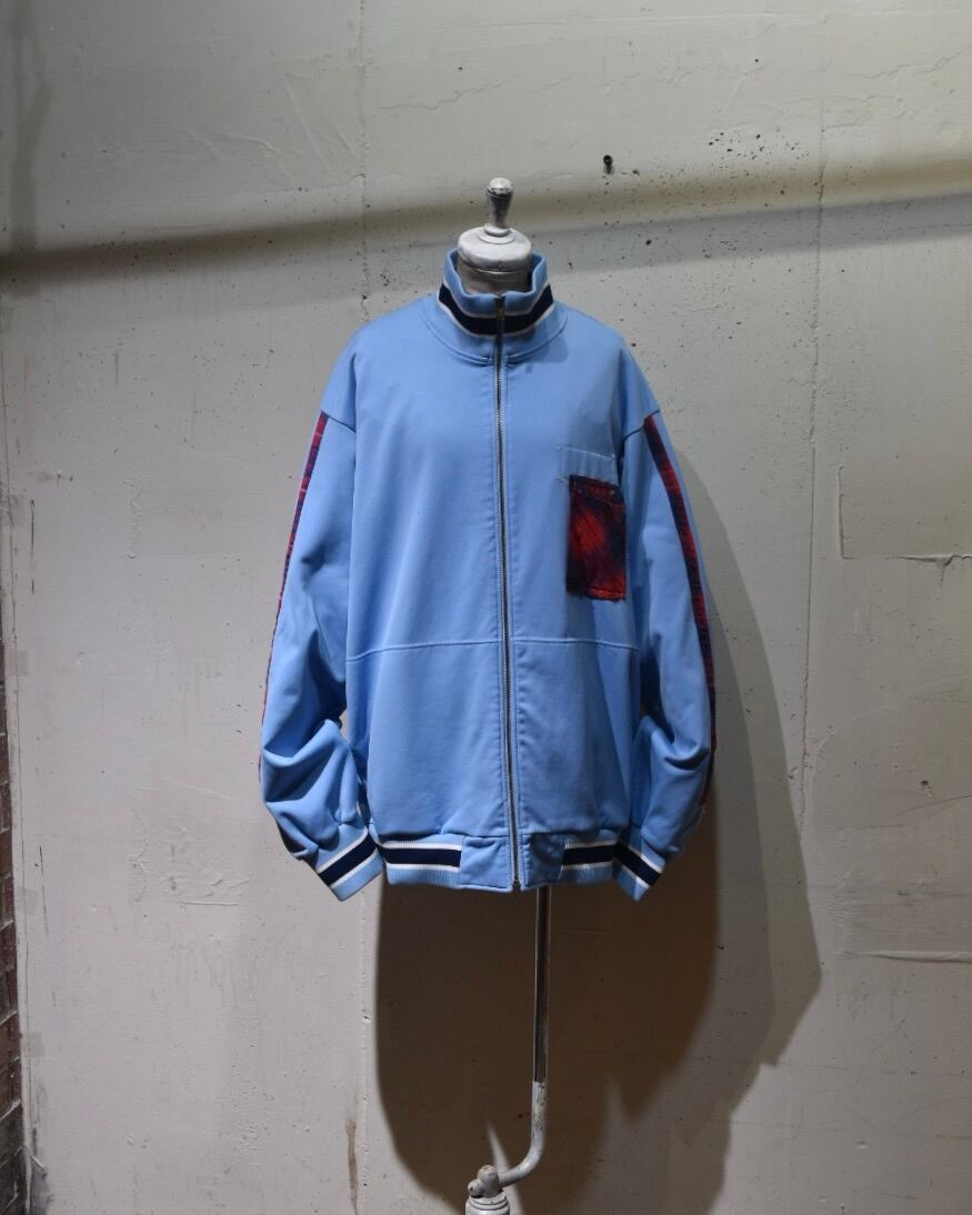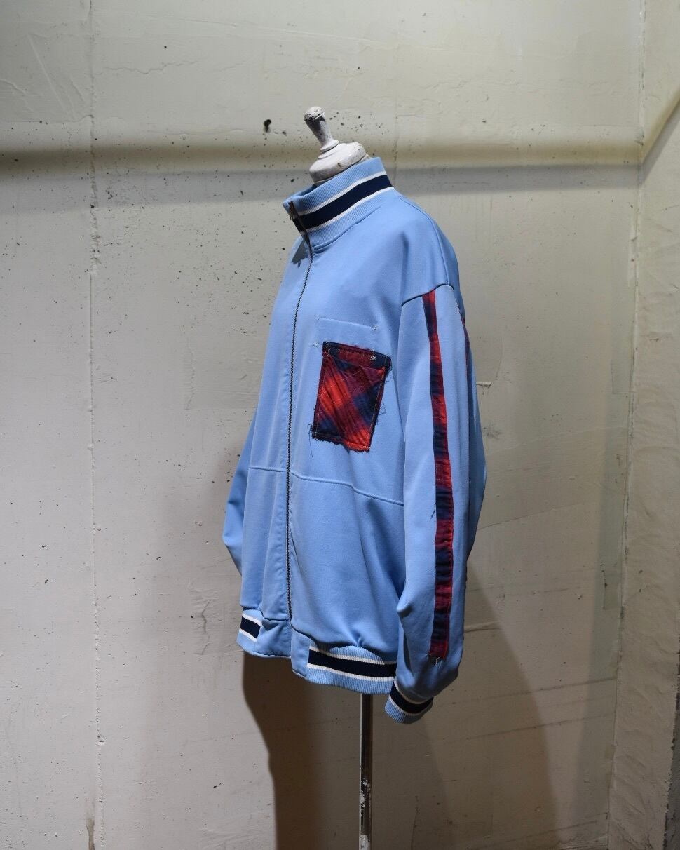 【リメイク古着】ジャージ|スカイブルー|赤チェック