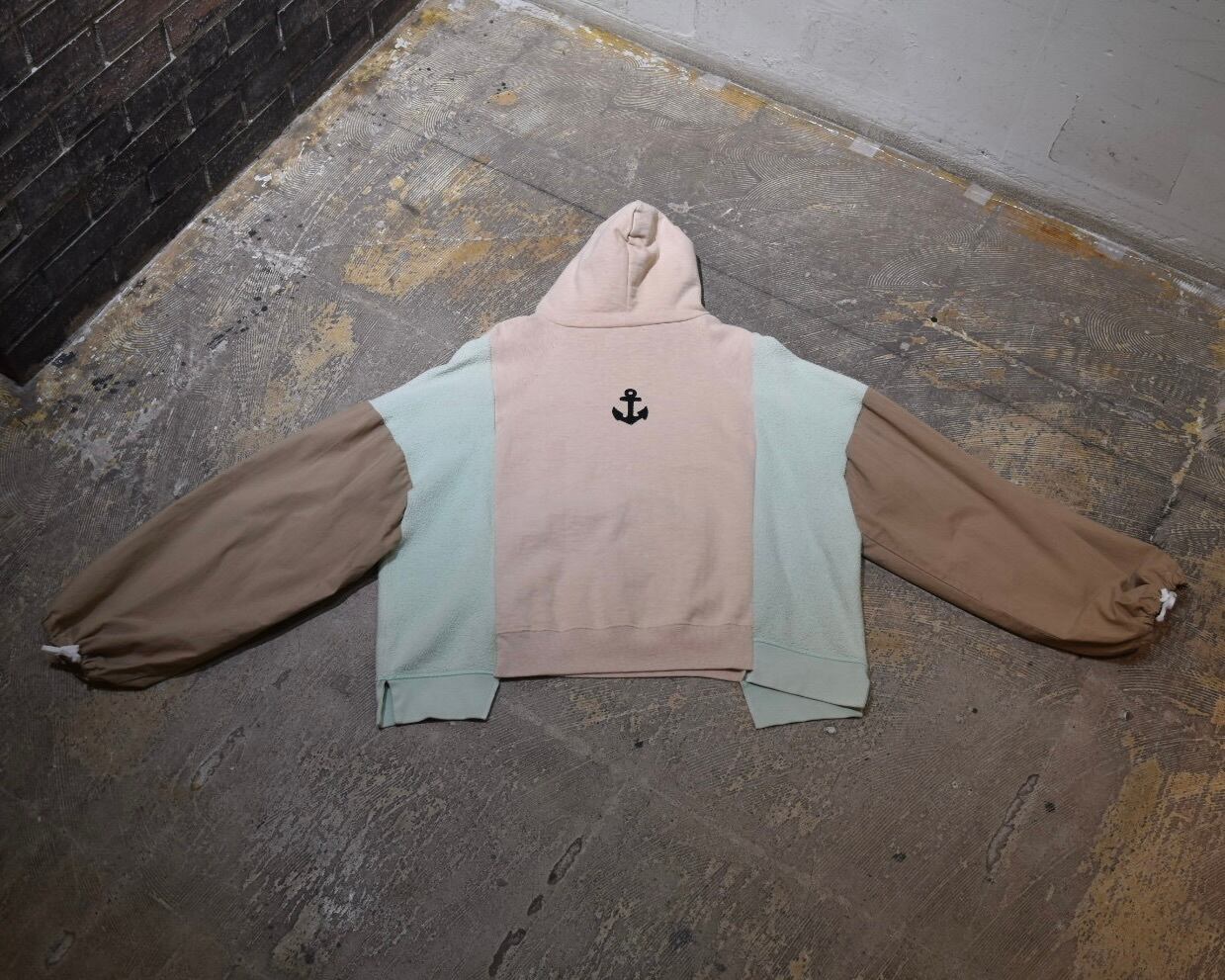 【リメイク古着】フード|ベージュ|ミントグリーン