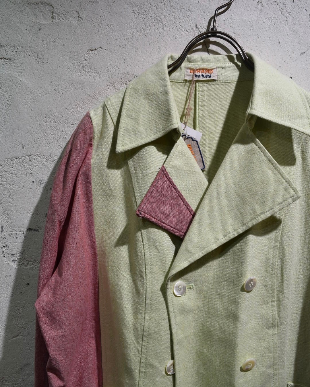 古着を繋ぎ合わせたリメイク作品は、その特性上、経年による色落ちやほつれが出ることがあります。