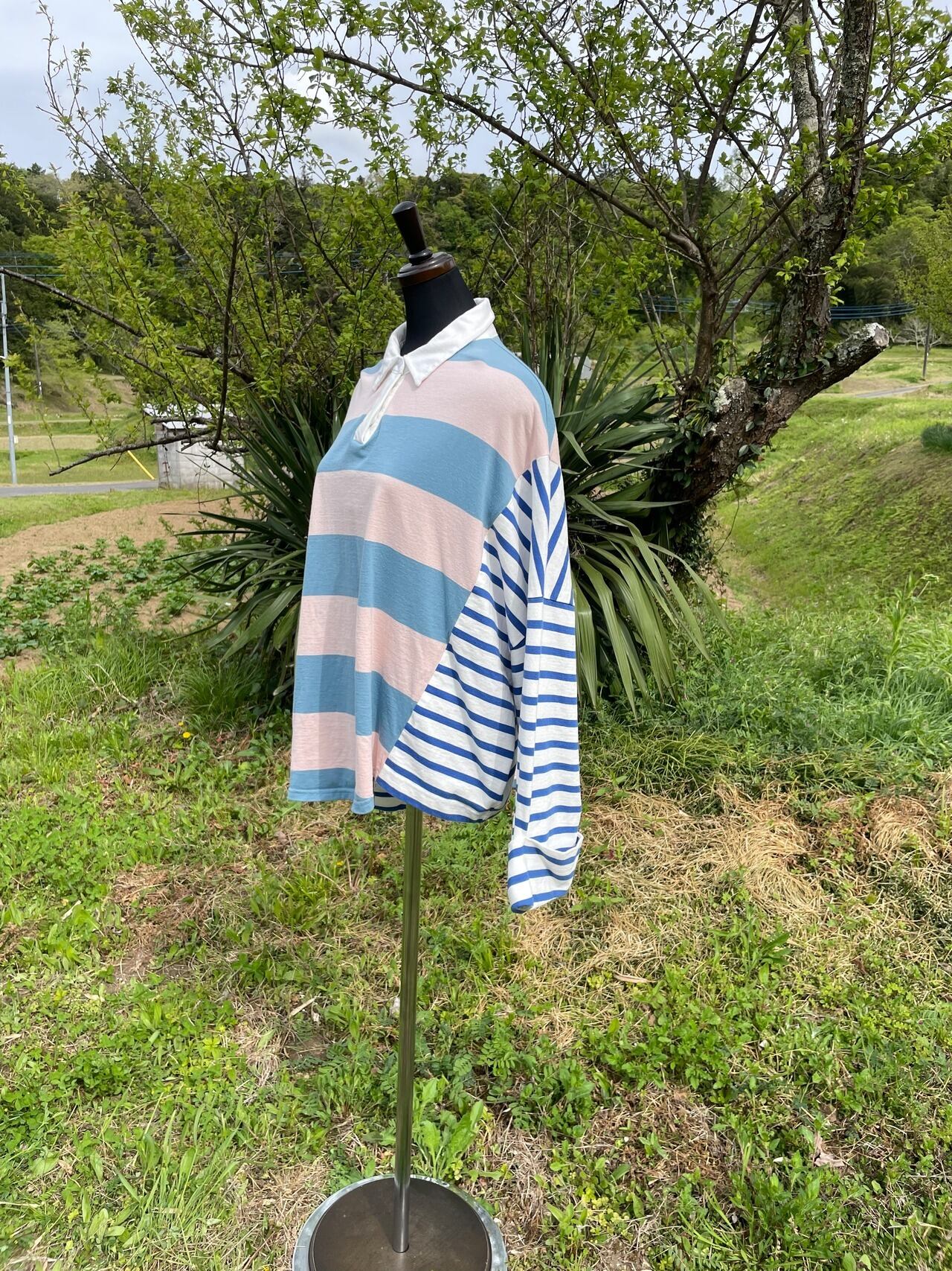 オーバーサイズ・ビックシルエットを用いて【ユトリ】を表現したリメイク古着。
