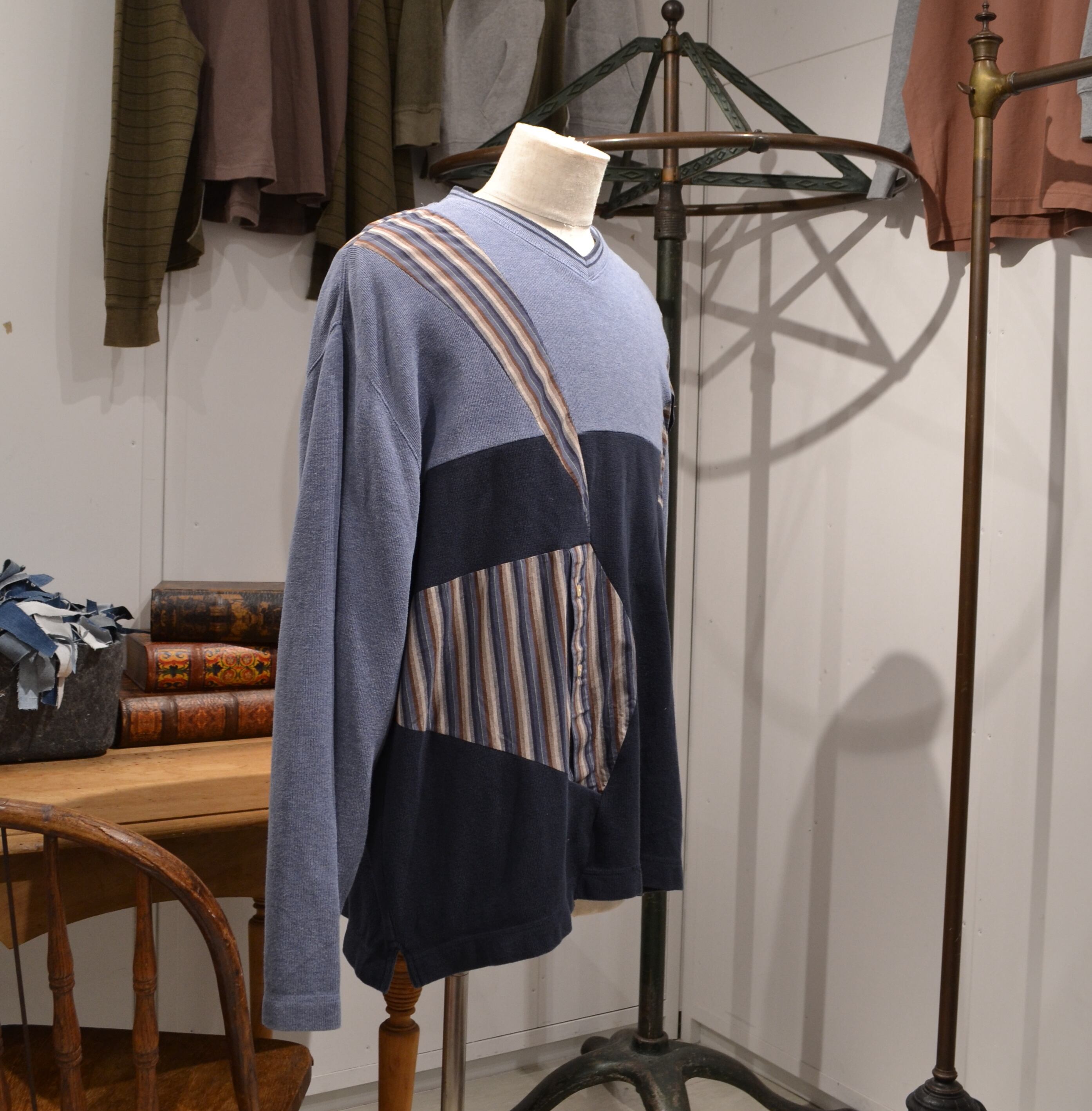 リメイク古着 Vネック ブルー