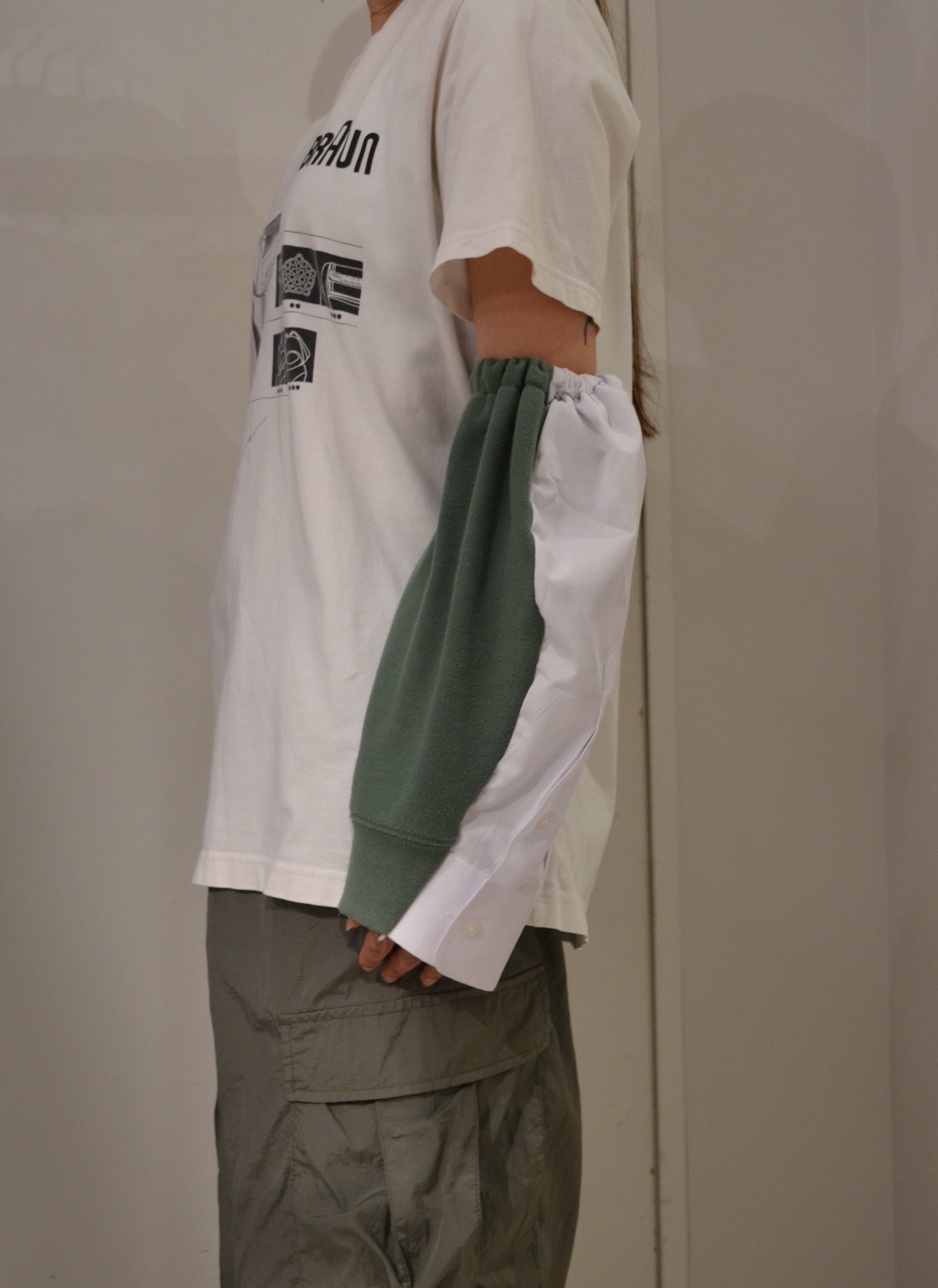 アップサイクルアームカバー グリーン ホワイト シャツ